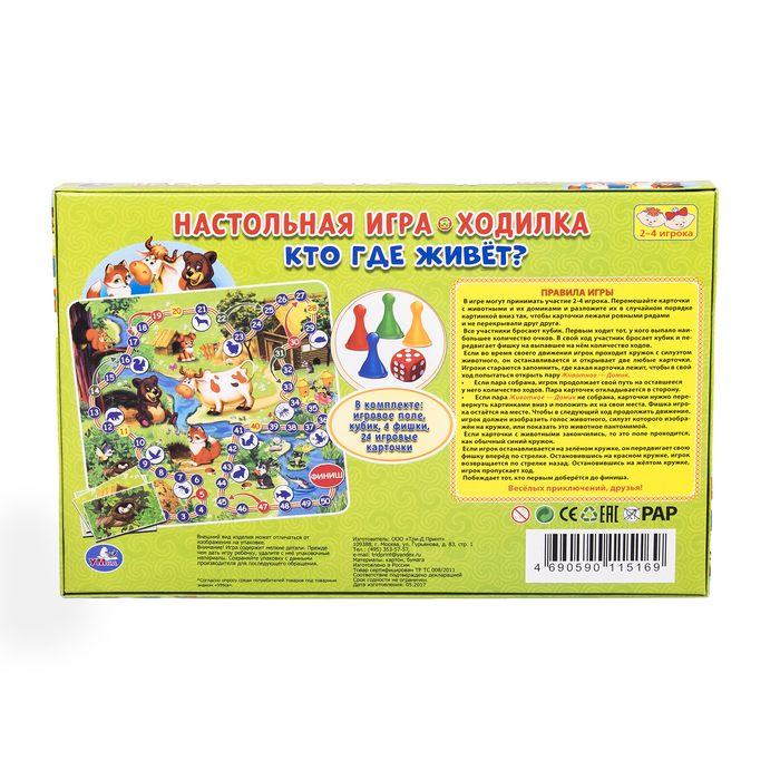 Настольная игра-ходилка "Кто, где живет", 24 карточки