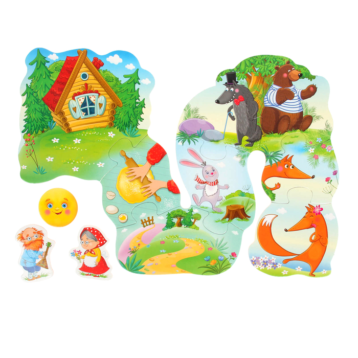 Пазл представляет собой игру-головоломку, в которой необходимо составить картинку из большого количества фрагментов. Сборка такой мозаики не потеряла свою популярность благодаря разнообразию её видов и изображений. Настольная игра «Путешествие по сказке. Колобок» поможет с пользой провести досуг, а также поспособствует развитию цветового восприятия, логического мышления и мелкой моторики.