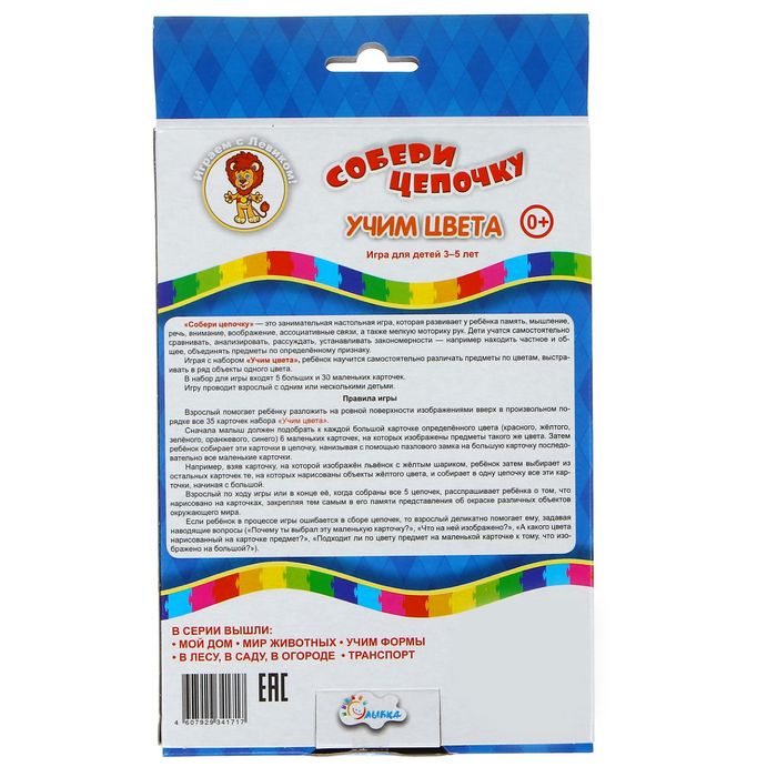 Настольная игра "Собери цепочку: Учим цвета"