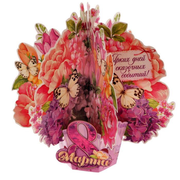 Специально к 8 Марта мы создали серию подарков для милых дам. Порадуйте дорогих женщин необычной и яркой открыткой. Несколько частей образуют объёмную фигурку, которая украсит стол или полку. Это эффектный сувенир и отличный знак внимания на праздник или дополнение к основному подарку.