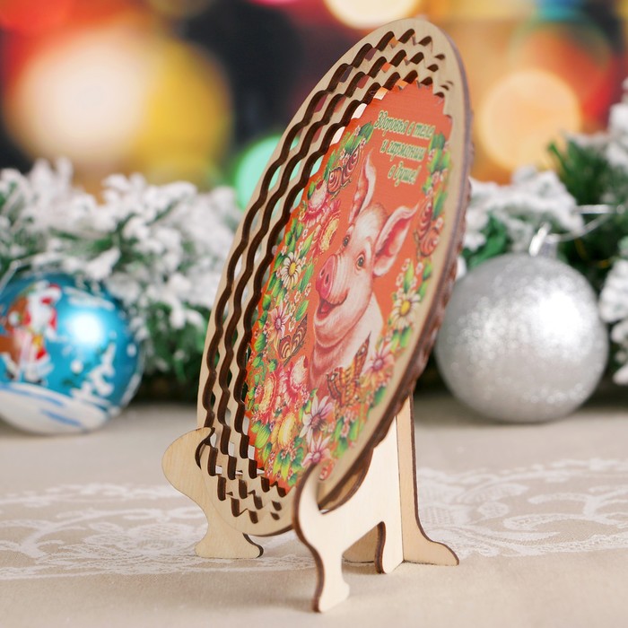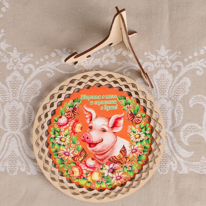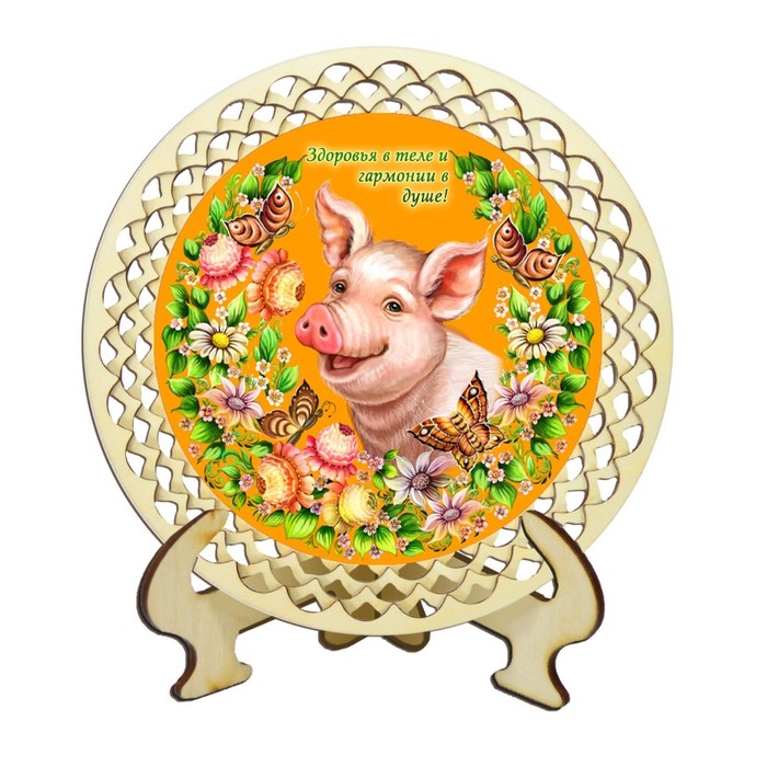 Настольная тарелочка «Свинка», здоровья в теле и гармонии в душе!, D=12 см