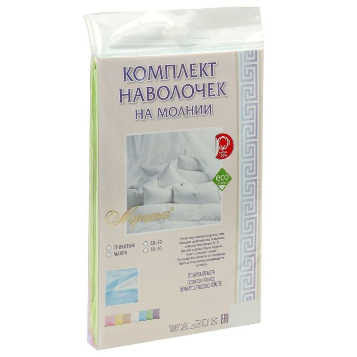Наволочки трикотажные на молнии, 70х70 - 2шт, цвет салатовый, 125 гр/м2