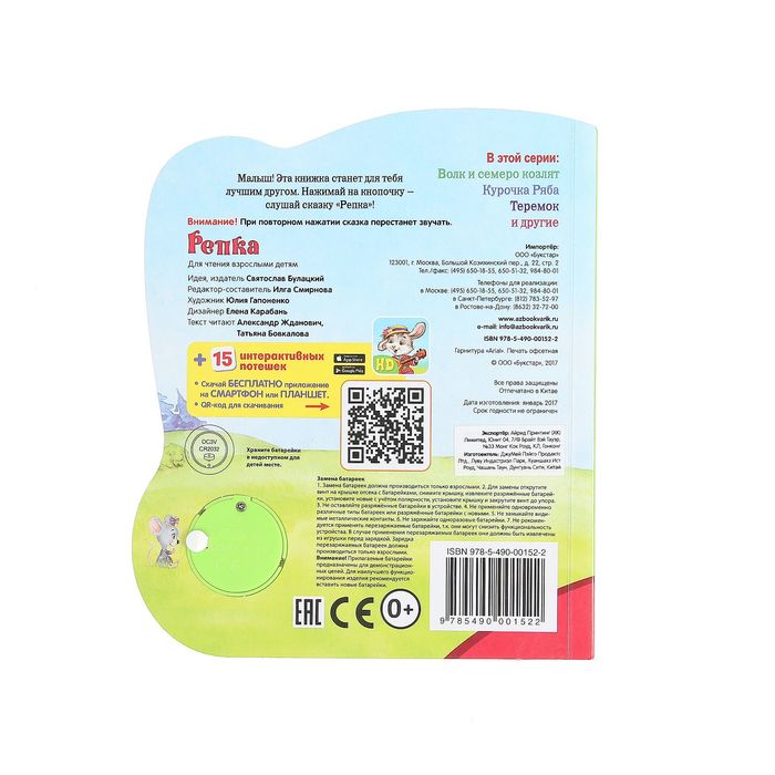 Нажми-послушай сказку "Репка" — отличный вариант для тех родителей, которые привыкли окружать своего малыша только лучшими и качественными вещами. За такой книжкой ваш ребёнок проведёт время с пользой и удовольствием, узнает много нового и интересного.