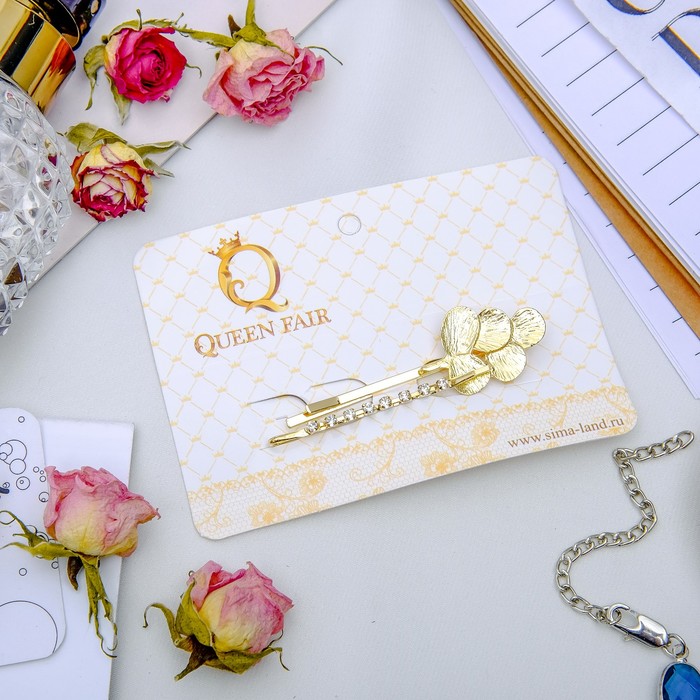 Невидимка для волос "Либерти" 5,8 см, 5 см, стразы и клевер — отличный помощник в создании аккуратной и красивой укладки за считанные секунды. Сделайте образ ярким!