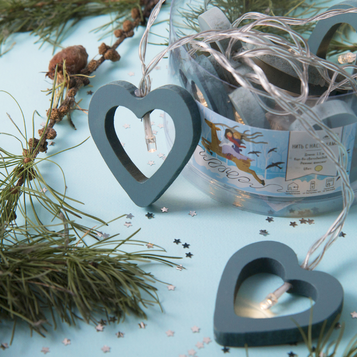 НИТЬ, 1.5 м, с насадк. "Сердце синее", Н.С., LED-10-3V, 2*АА (не в компл), фиксинг, Т/БЕЛЫЙ
