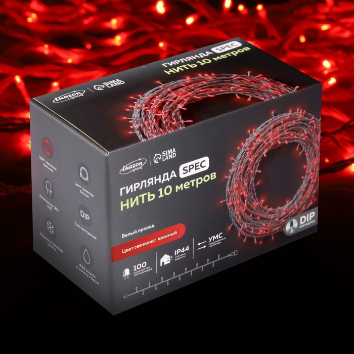 НИТЬ уличная, УМС, Д: 10 м, Н.Б. 3W LED-100-220V, КРАСНЫЙ