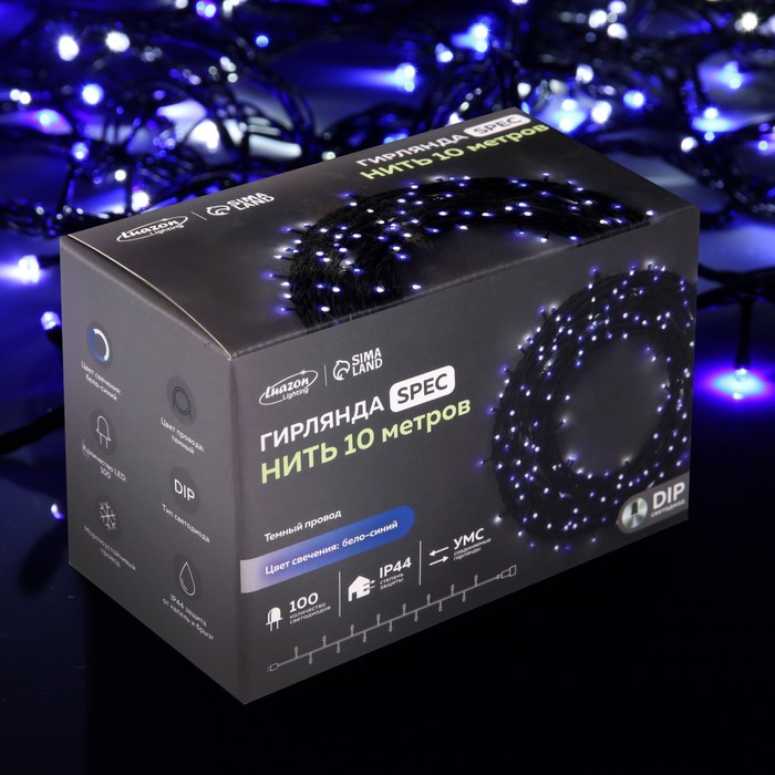 НИТЬ уличная, УМС, Д: 10 м, Н.Т. 3W LED-100-220V, БЕЛО-СИНИЙ