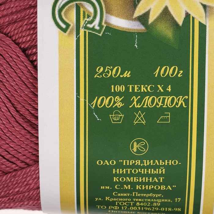 Нитки вязальные "Лотос" 250м/100гр 100% мерсеризованный хлопок цвет 1506