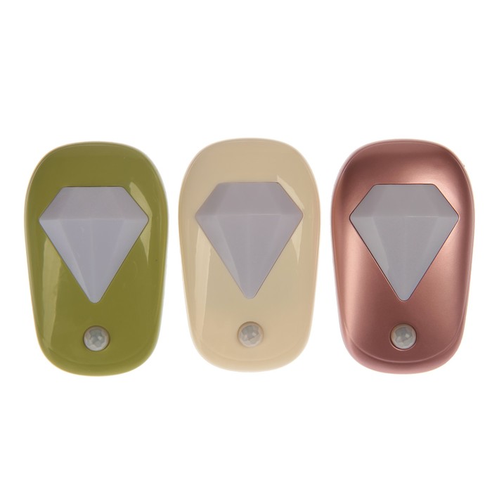 Ночник "Бриллиант" 0,1W LED (датчик освещ., от 220V) МИКС 3x5,5x9 см — одна из важных деталей освещения детской или спальной комнаты. Этот небольшой предмет удивит вас своим дизайном и порадует мягким рассеянным светом. Он пригодится в семье, где есть маленькие дети: приглушённый свет не позволит испугаться ребёнку, если он проснулся ночью.