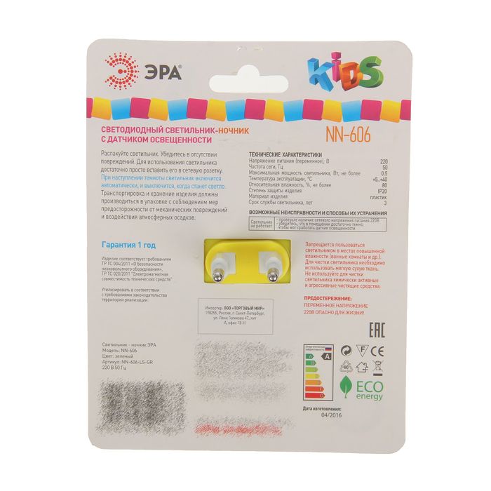 Ночник ЭРА NN-606-LS-GR зеленый "Клевер" сенсорный