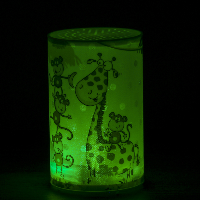 Ночник пластик "Жираф и обезьяны" от батареек CR2032х1 7,1х7,1х11,3 см — одна из важных деталей освещения детской или спальной комнаты. Этот небольшой предмет удивит вас своим дизайном и порадует мягким рассеянным светом. Он пригодится в семье, где есть маленькие дети: приглушённый свет не позволит испугаться ребёнку, если он проснулся ночью.