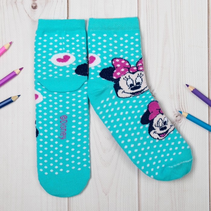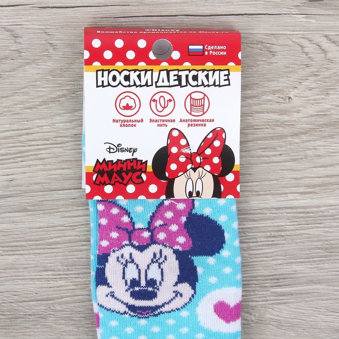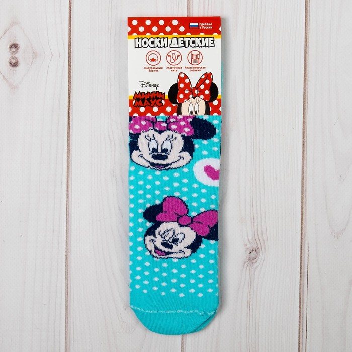 Носки детские, Минни Маус, мятный, 20-22 см, 10-12 лет, 80% хлопок, 17% полиамид, 3% эластан