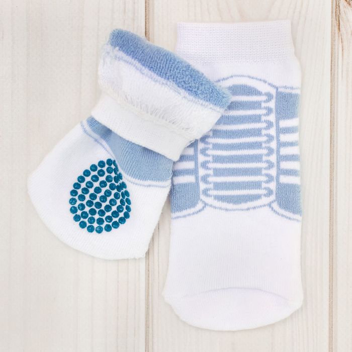 Носки детские плюшевые со стопперами, цвет голубой, размер 12-14