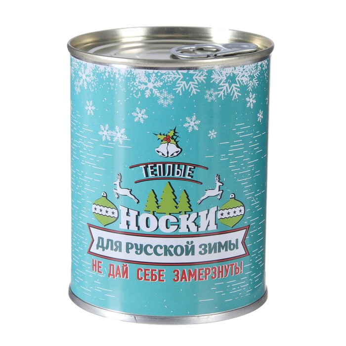 Носки в консервной банке "Носки для русской зимы" (носки мужские махровые,синие с белым)