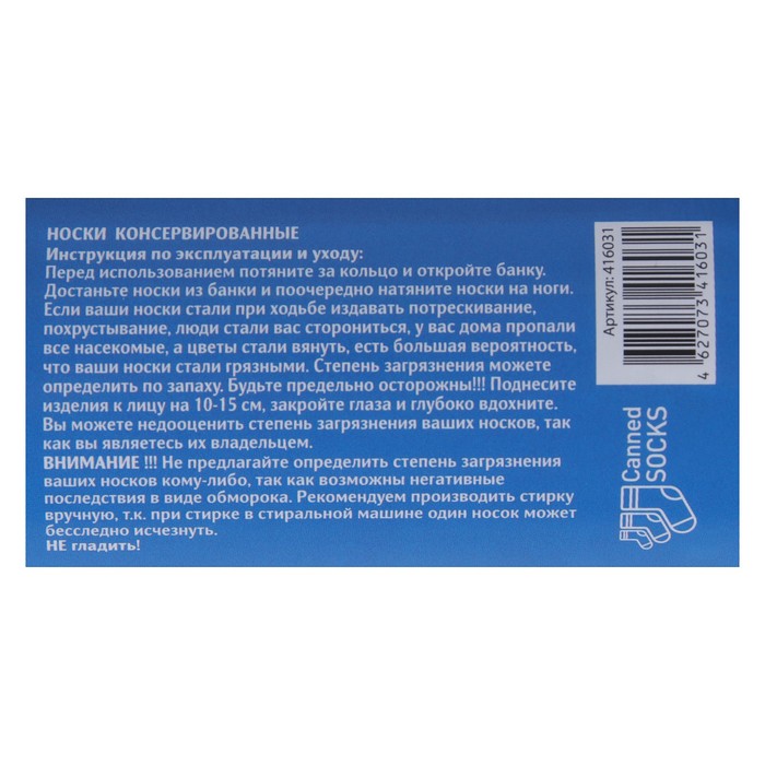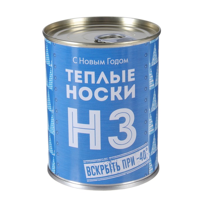 Носки в консервной банке "НЗ вскрыть при -40" (носки мужские махровые, синие с белым)