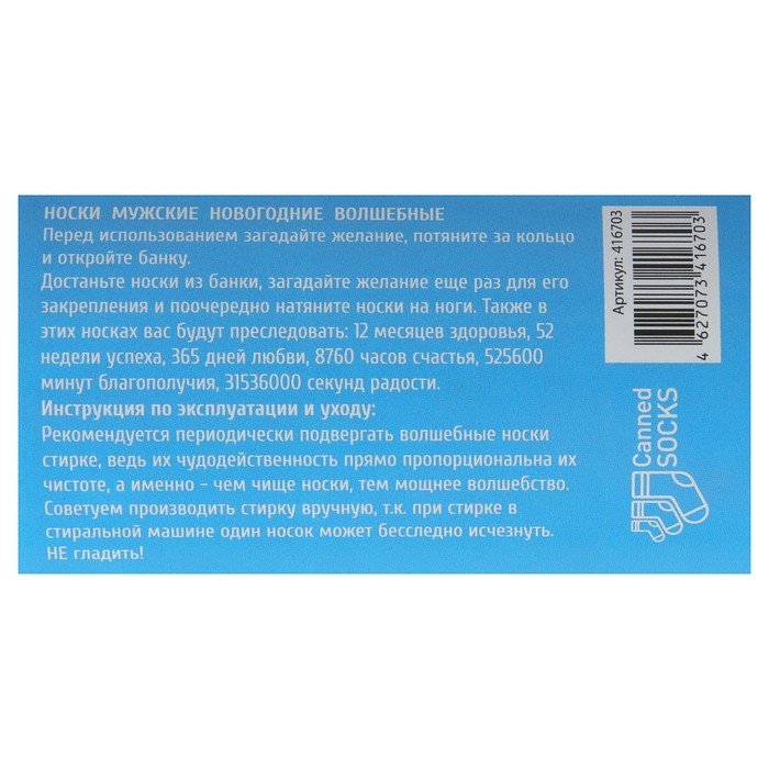 Носки в консервной банке"Носки для любимого мужчины! С Новым годом" (носки муж. цвет чёрн)