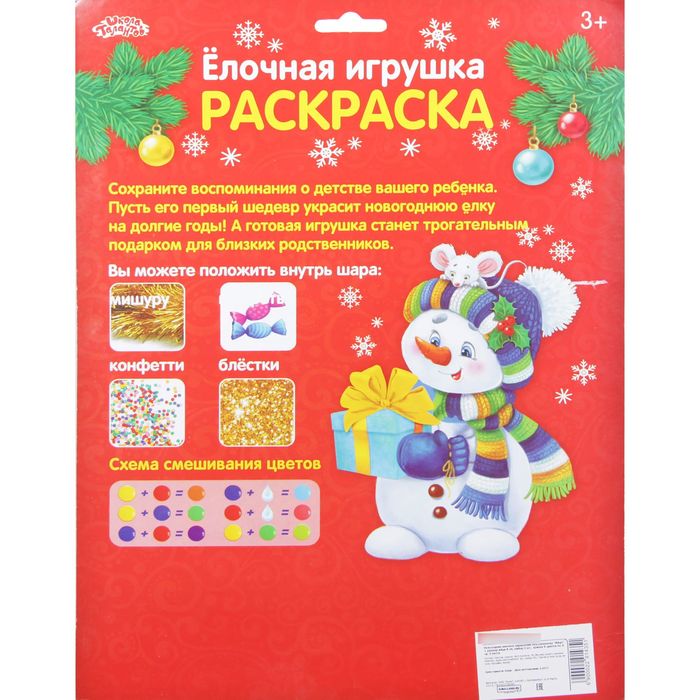 Новогоднее елочное украшение под раскраску "Шар со Снеговиком" + размер шара 11 см, краски 6 цветов