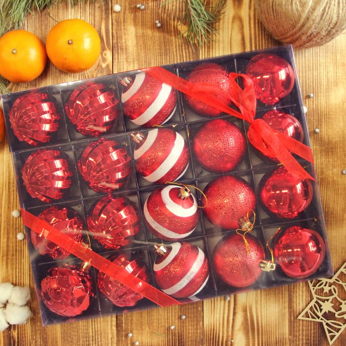 Новогодние шары "Элит" (набор 20 шт.), красные
