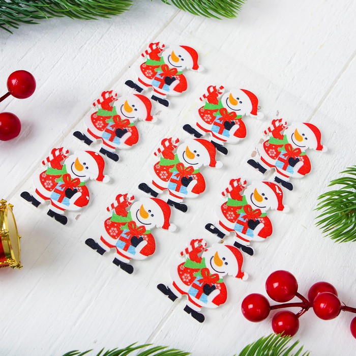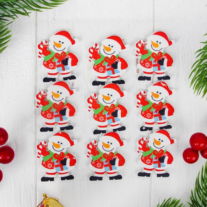 Новогодний декор на магните "Снеговик с подарочком", набор 9 шт.