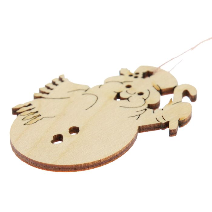 Новогодний подвес "Снеговик в шляпе", бежевый, 7 см + нитка
