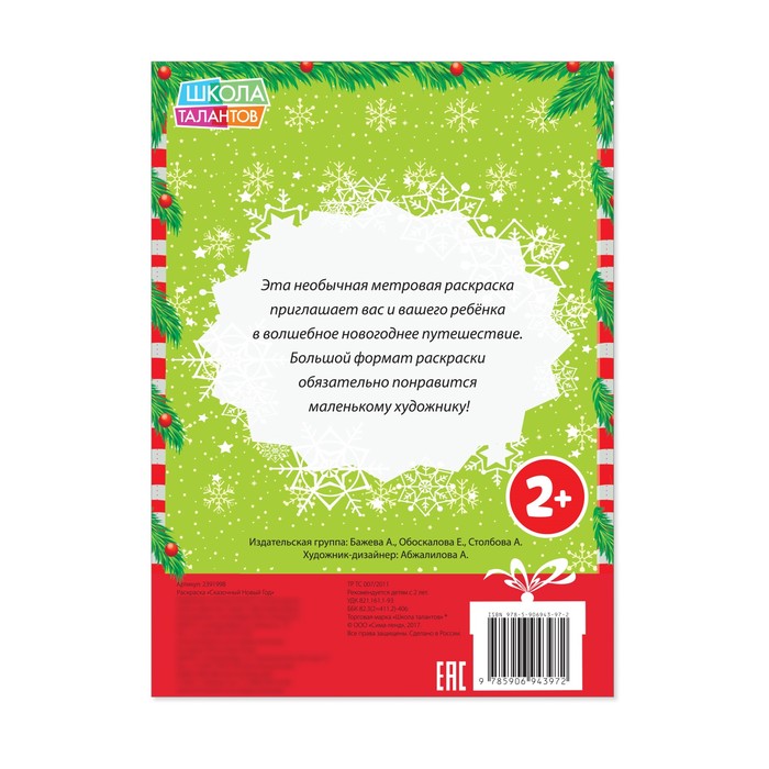 Может быть, именно такой необычный товар, как Новогодняя раскраска "Сказочный Новый Год" 1 метр, раскроет неожиданные способности у вашего ребёнка. И даже если он не станет новым Рафаэлем, то ему, определённо, обеспечена богатая фантазия, креативное мышление и золотые руки.