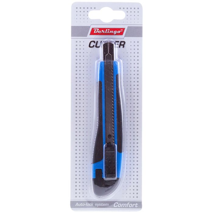 Нож канцелярский 9 мм Comfort, auto-lock, металлические направляющие, мягкие вставки, европодвес