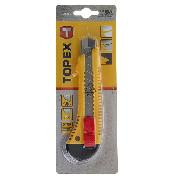 Нож универсальный TOPEX, корпус пластик, квадратный фиксатор, усиленный, 18 мм