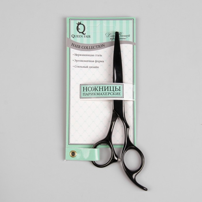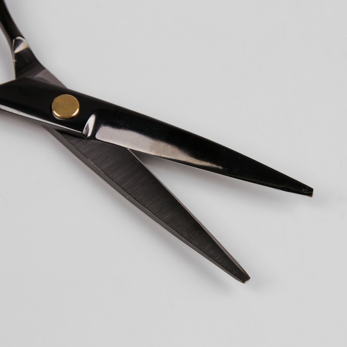 Ножницы парикмахерские с упором, загнутые кольца, лезвие 5,5см, цвет чёрный