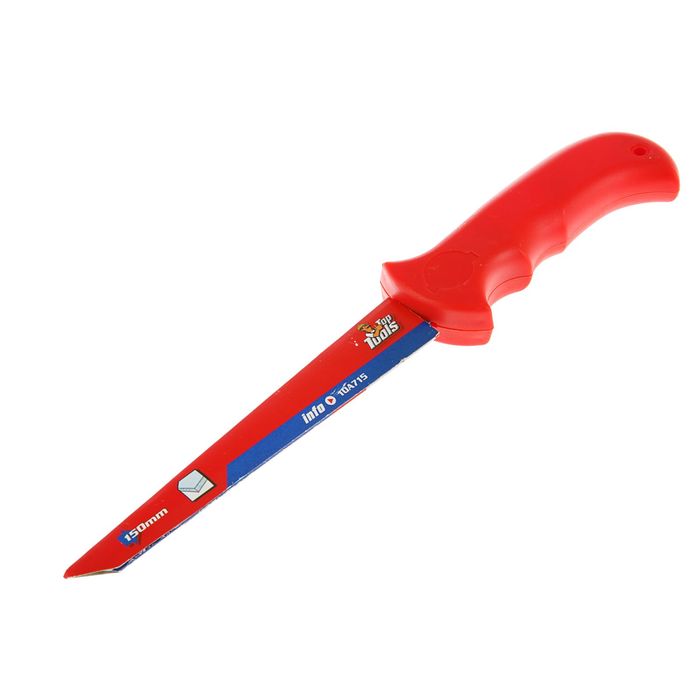 Используйте инструмент для распила заготовок из дерева, гипсокартона или пластмассы. Зауженное полотно поможет вам вырезать отверстия различного диаметра. Лезвие ножовки выполнено из прочной стали с прямыми зубьями. Рукоять изготовлена из пластика с вырезами под руку для комфортной работы.