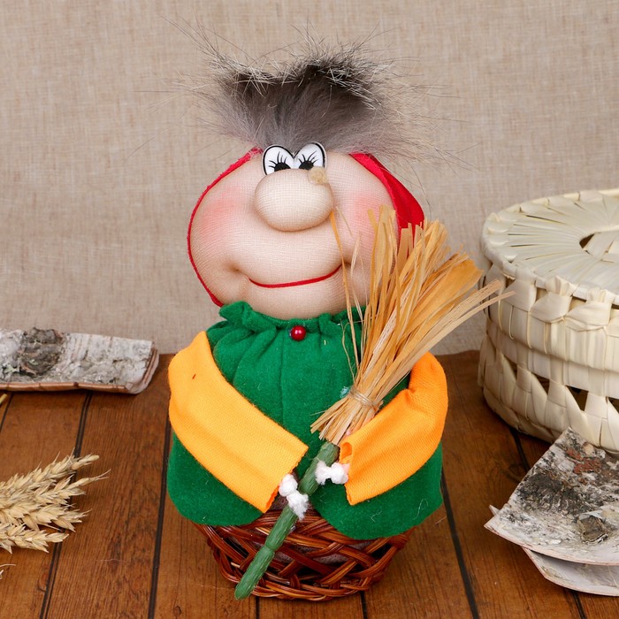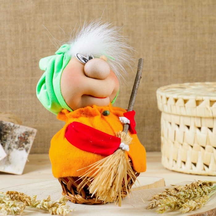 Оберег «Баба-Яга», в ступе, с метлой, 18 см, микс