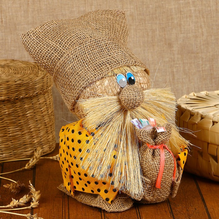 Оберег «Домовой Денежный мешок», микс — сувенир в полном смысле этого слова. И главная его задача — хранить воспоминание о месте, где вы побывали, или о том человеке, который подарил данный предмет. Преподнесите эту вещь своему другу, и она станет достойным украшением его дома.