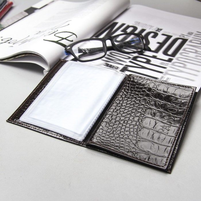 Обложка для автодокументов и паспорта, коричневый кайман