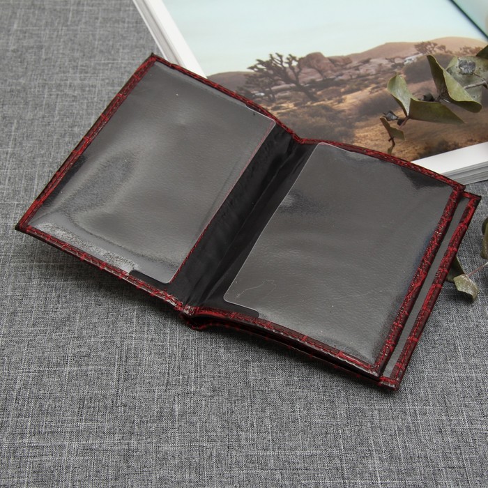 Обложка для автодокументов и паспорта, крокодил, цвет винный