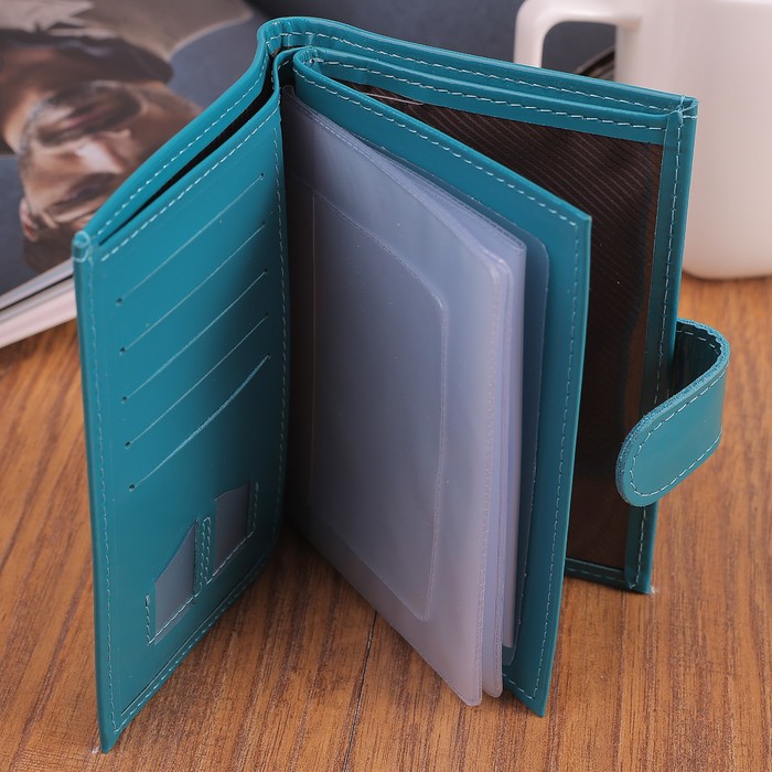 Обложка для автодокументов и паспорта, отдел для купюр, карманы для карт, шик, цвет бирюзовый