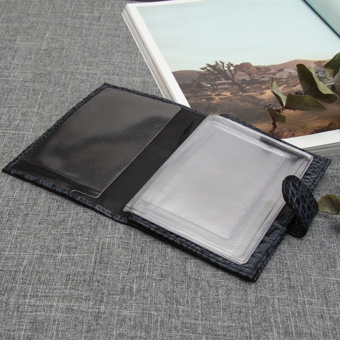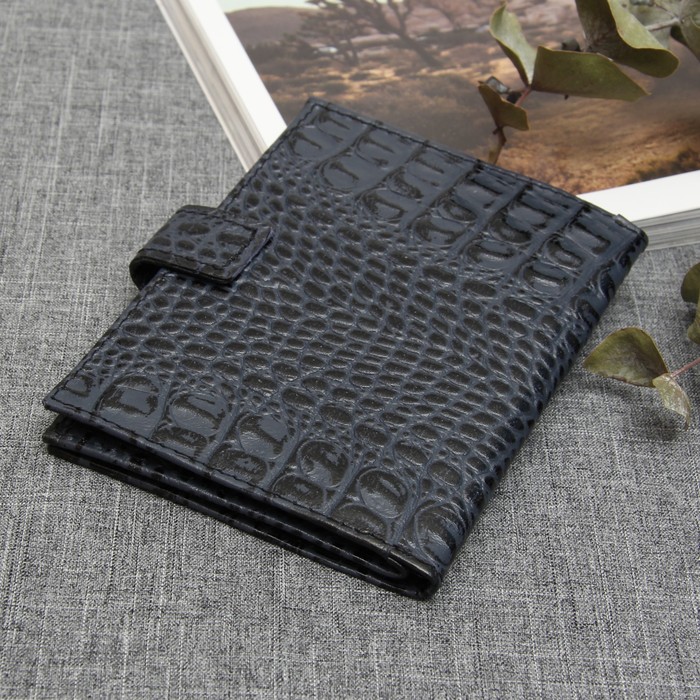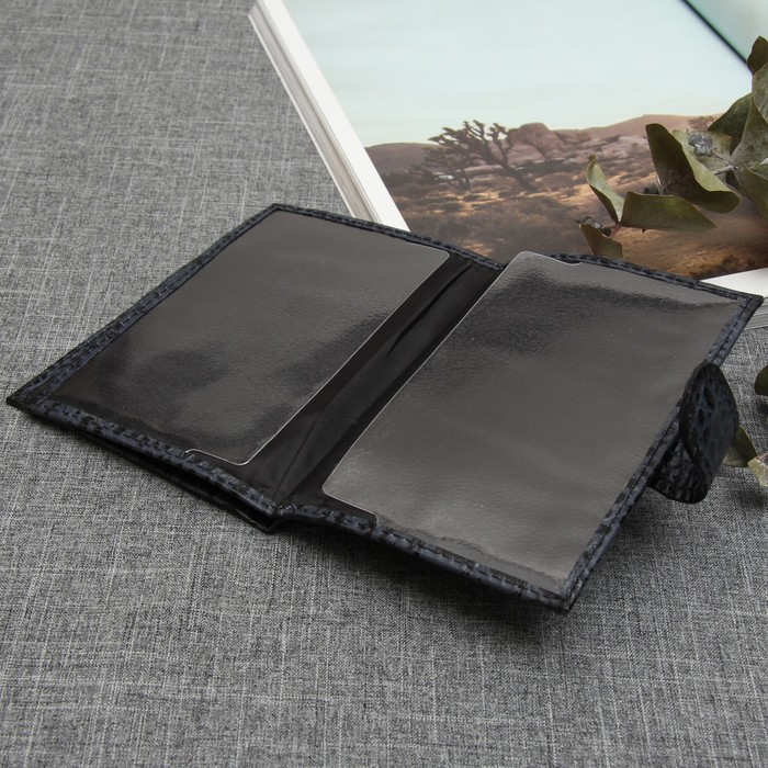 Обложка для автодокументов и паспорта, с хлястиком, кайман, цвет синий