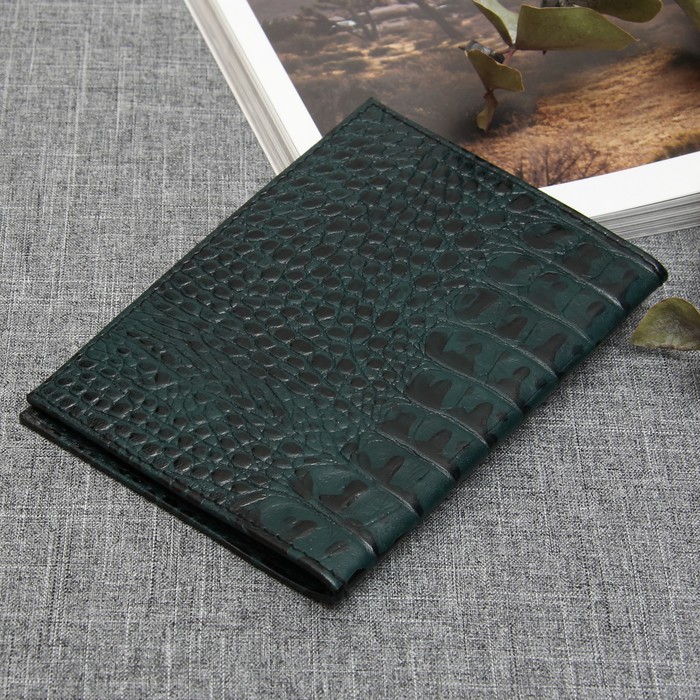 Обложка для автодокументов, кайман, цвет зелёный