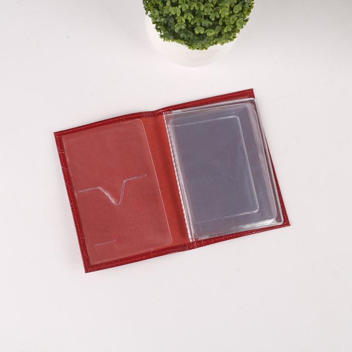 Обложка для автодокументов, крокодил, цвет красный