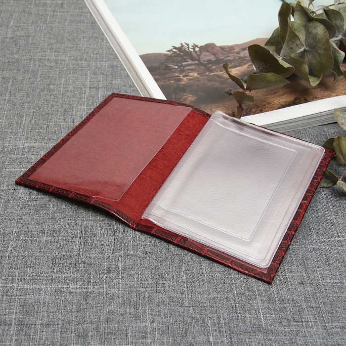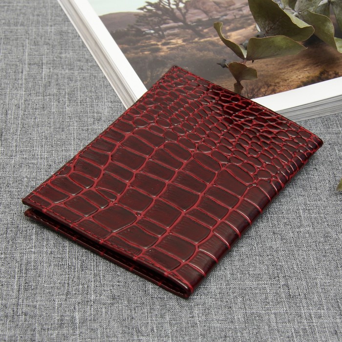 Обложка для автодокументов, крокодил, цвет винный