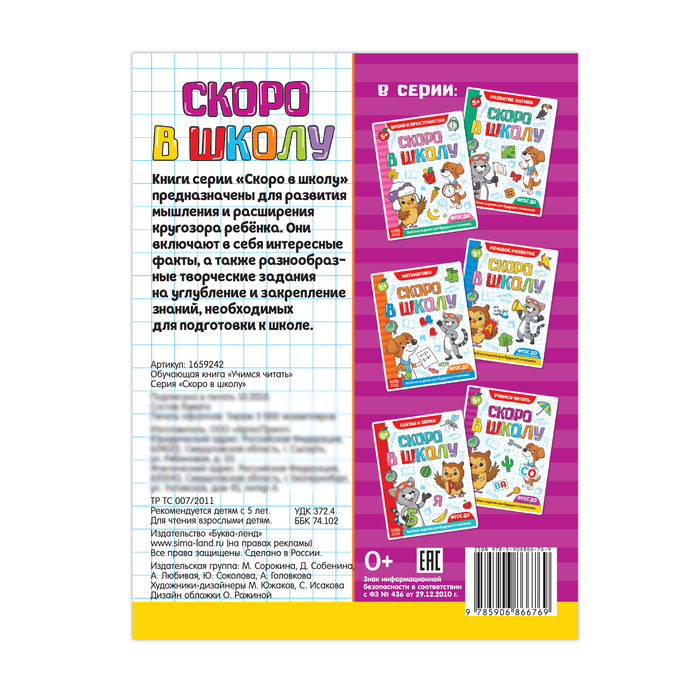 Книжки серии «Скоро в школу» помогут родителям подготовить ребёнка к первому классу. Они включают в себя обучающие и развивающие уроки, интересные факты, а также увлекательные творческие задания.