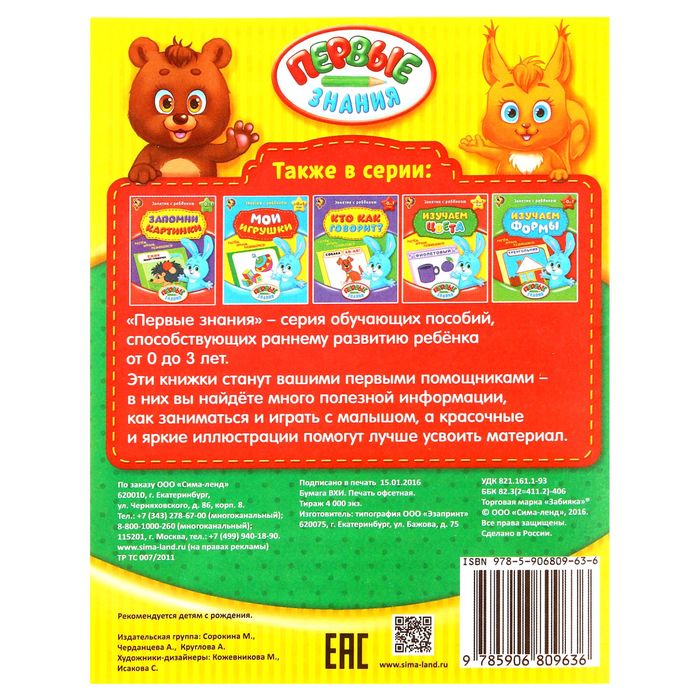 Серия пособий «Первые знания» станет вашим помощником в занятиях с ребёнком! Главная особенность обучающих книг в том, что они будут интересны малышу после того, как ему исполнится годик.