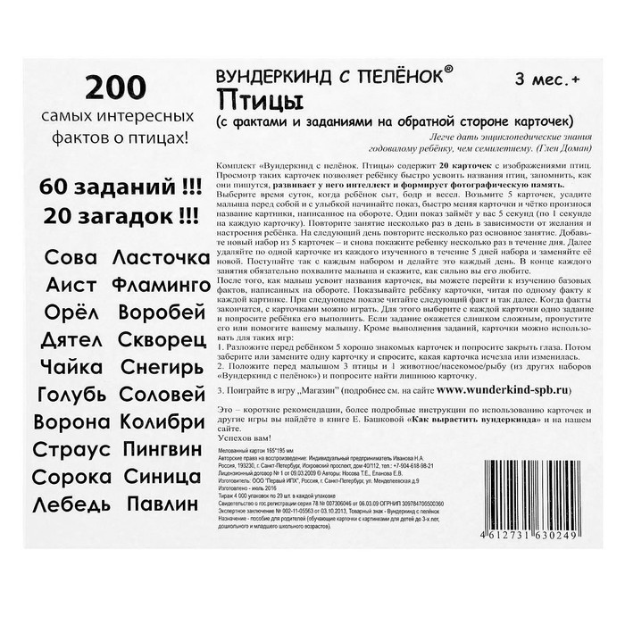 Изучая различную литературу, вы можете получить очень много ценной информации, расширить кругозор, словарный запас и стать эрудированным. Кроме того, книга — это отличный способ расслабиться и с удовольствием провести время. Пусть Обучающие карточки "Птицы" станет очередным полезным изданием в вашей коллекции.