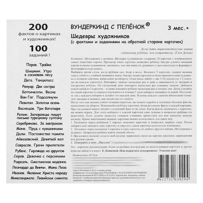Изучая различную литературу, вы можете получить очень много ценной информации, расширить кругозор, словарный запас и стать эрудированным. Кроме того, книга — это отличный способ расслабиться и с удовольствием провести время. Пусть Обучающие карточки "Шедевры художников" станет очередным полезным изданием в вашей коллекции.