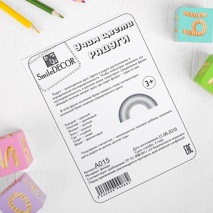 Обучающий планшет "Цвета радуги", 15,5 × 21 см