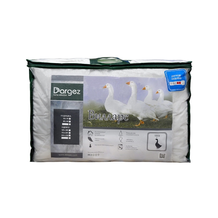 Одеяло DARGEZ ВИЛЛАРС 140х205 стандартное, белый пух первой категории, перкаль