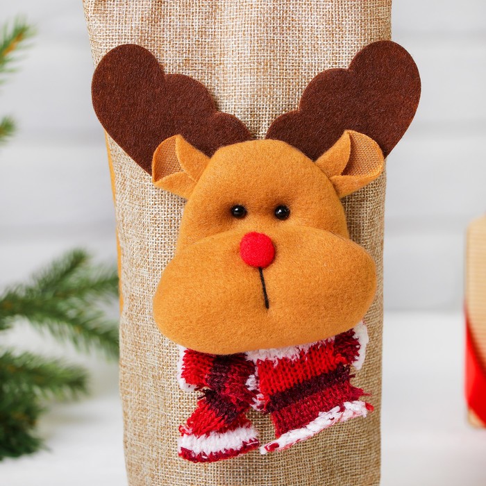Одежда на бутылку "Олень полосатый шарф" с ручками