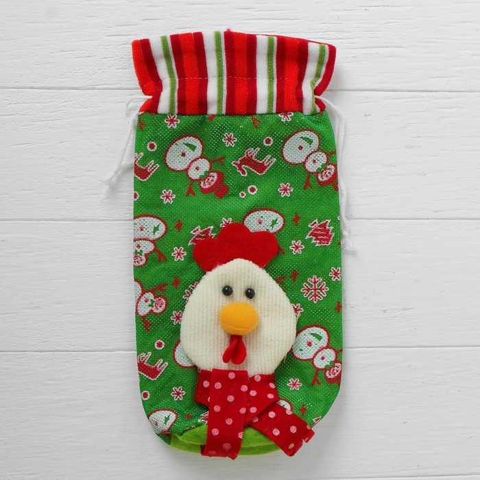 Создать новогоднюю атмосферу легко! Красочный мешочек с аппликацией в виде петушка — отличный вариант для упаковки подарочной бутылки. Нарядите презент и поставьте под ёлочку — в таком одеянии он точно выделится из всего многообразия новогодних сувениров.