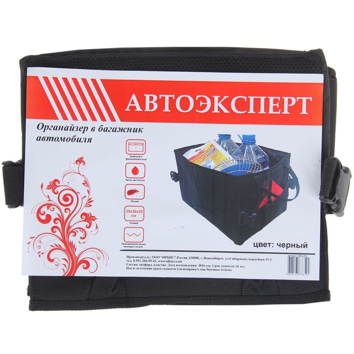 Вместительный органайзер практичного чёрного цвета предназначен для хранения разных вещей и автомобильных принадлежностей. Оснащён сетчатыми отделениями-карманами на внешней стороне. Такой аксессуар удобно разместится в багажнике автомобиля и обеспечит быстрый доступ к необходимым вещам.