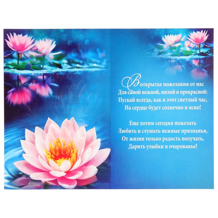 Открытка двойная "Поздравляем!", кувшинки, 19х25см