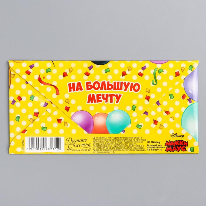 Открытка-конверт для денег "На большую мечту", Микки Маус