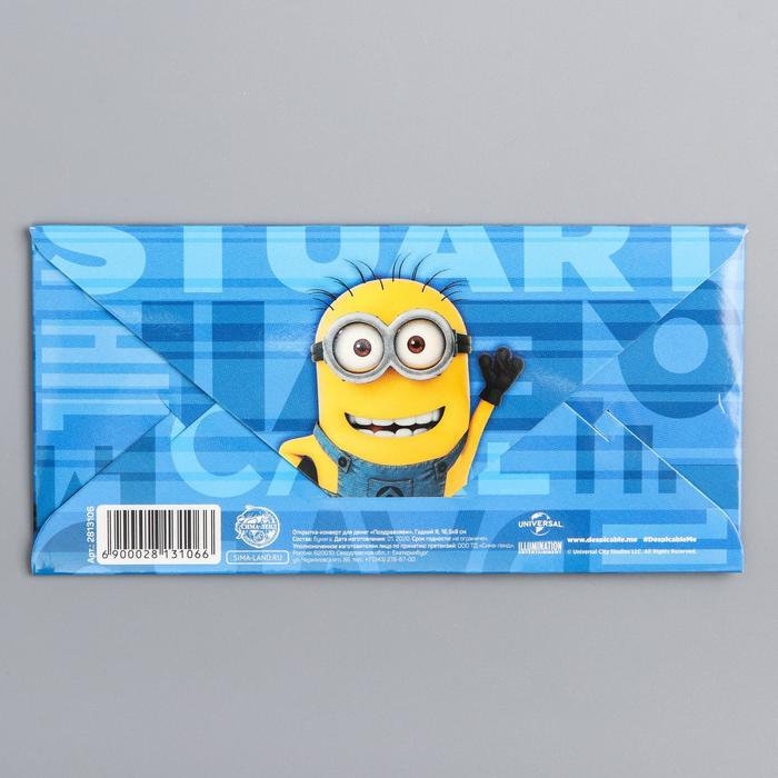 Открытка-конверт для денег "Поздравляем", Гадкий Я, 16,5х8